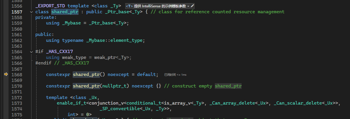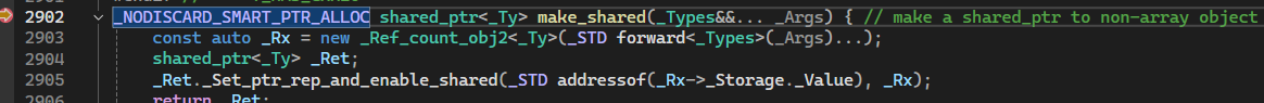 程序运行到此处时开始逐语句进行调试,我们进入make_shared内部。