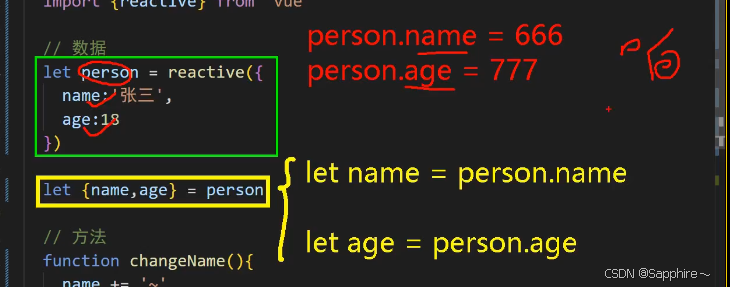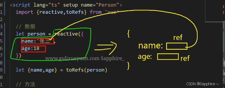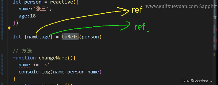 toRefs 把reactive 对应的所有key val解构出来,并且具有响应式能力