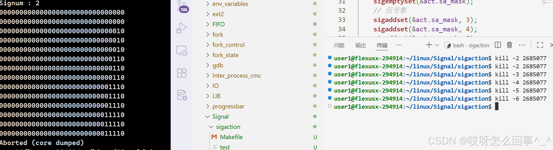 若是一次想屏蔽很多信号 使用信号集 验证一下