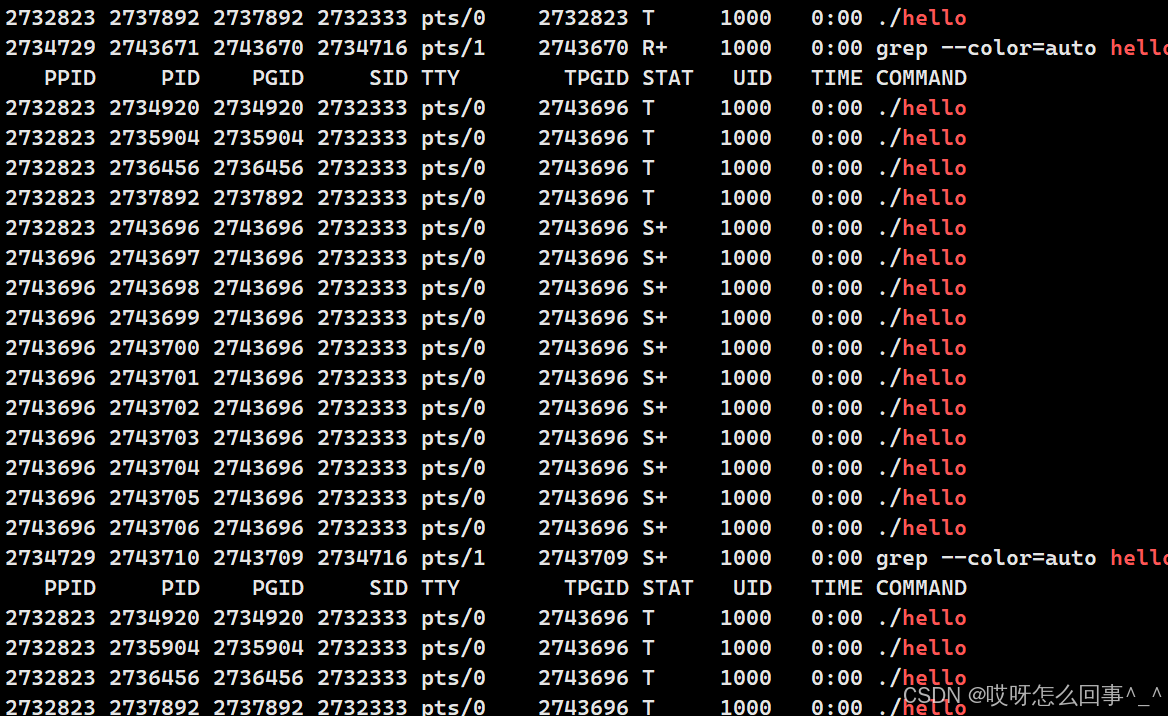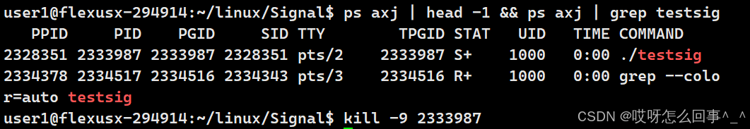 证明前台进程只能有一个 现在./testsig启动这个进程 那么这个进程就是前台进程了 按理说shell接受不了从键盘上的输入了 看看