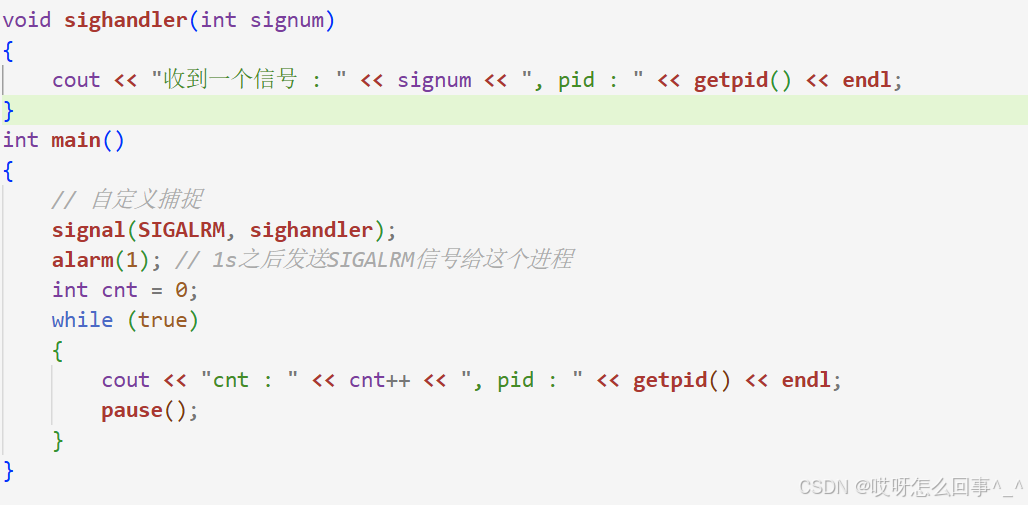 cout << "收到一个信号 : " << signum << endl;