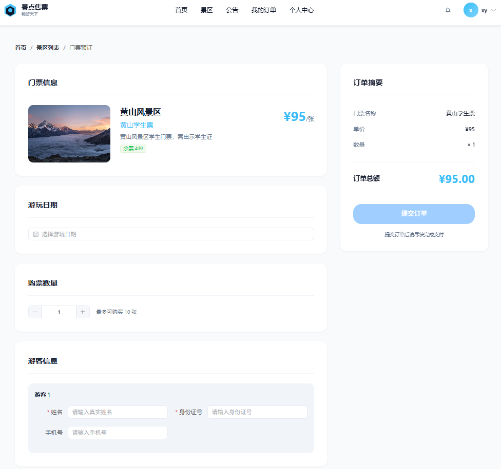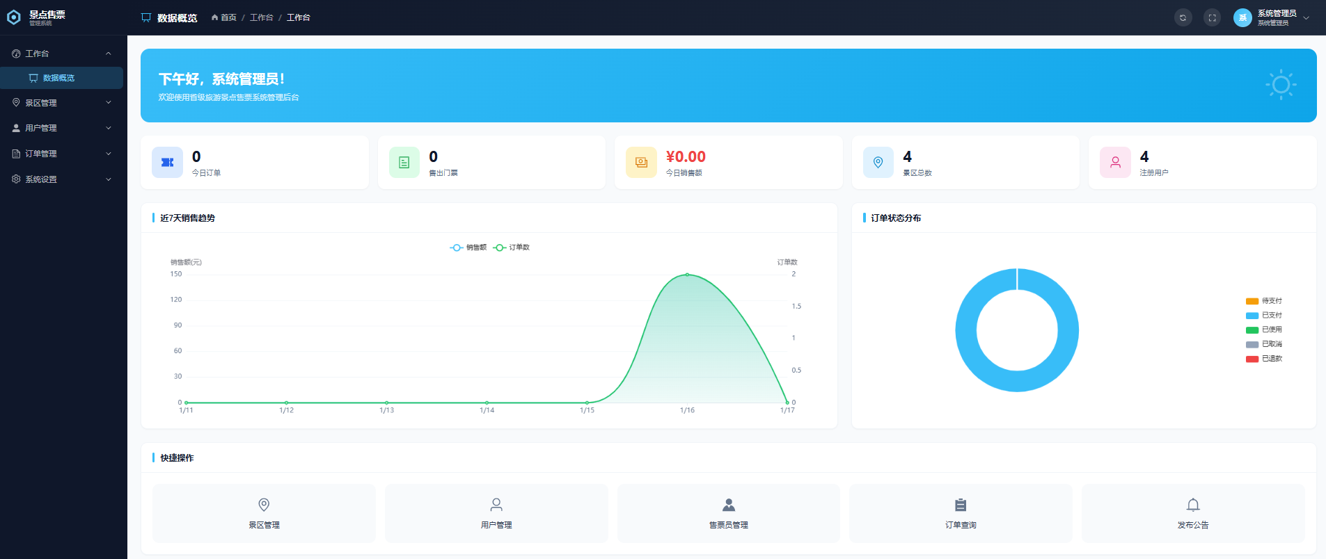 本系统完成了"后端 + 管理端 + 游客门户 + 小程序"的全端协同,实现了旅游票务的关键业务闭环: