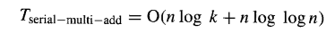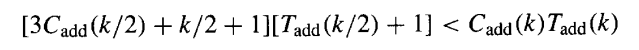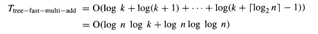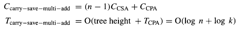 考虑到 CSA 树的对数高度(如第 8.3 节所述),乘法在k/b个周期内执行,每个周期的持续时间为O(logb),再加上一个需要O(logk)时间的最终加法。因此,总的时间复杂度变为: