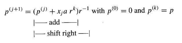 基2^b乘法器:这是一种乘法器设计,每次迭代处理乘数的b个比特。b越高,所需的迭代次数k/b越少,但每个周期内的硬件(如生成倍数、CSA树)更复杂。