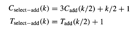 以下简单分析展示了进位选择方法的成本效益。让我们以单个比特的2选1多路复用器的成本和延迟为单位 ,并假设一个 k 位加法器的成本和延迟分别为 C{add}(k) 和 T{add}(k)。那么,图7.9的进位选择加法器的成本和延迟为: