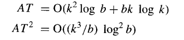 在复杂度范围的低端,即b为常数时,我们的乘法器的AT和AT^2度量分别为O(k^2)和O(k^3)。在另一个极端,即 b=k(此时一次考虑所有乘数位),我们有AT=O(k^2logk)和AT^2=O(k^2(logk)^2)。中间的设计不会产生更好的AT和AT^2值;因此,对于参数b的整个范围,这些乘法器在渐进意义上仍然是次优的。