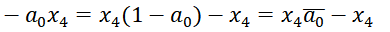 因此,我们可以用两个条目a₄x̄₀和-a₄替换-a₄x₀ 。如果使用条目a₄而不是 -a₄,则列和增加了2a₄。为了补偿这一点,我们必须在下一个更高列中插入 -a₄。同样的论证可以对a₄x̄₁、a₄x̄₂和a₄x̄₃重复进行。除第一列外的每一列都得到一个a₄和一个 -a₄,它们相互抵消。p₈列得到一个-a₄条目,可替换为ā₄ - 1。**同样的论证可重复用于āᵢx₄条目,从而在第p₄列插入x₄,在第p₈列插入x̄₄ - 1。**这样在第八列产生的两个-1等价于p₉列中的一个-1条目,而p₉列的-1又可替换为一个1和一个向不存在的(无关紧要的)第十列的借位。