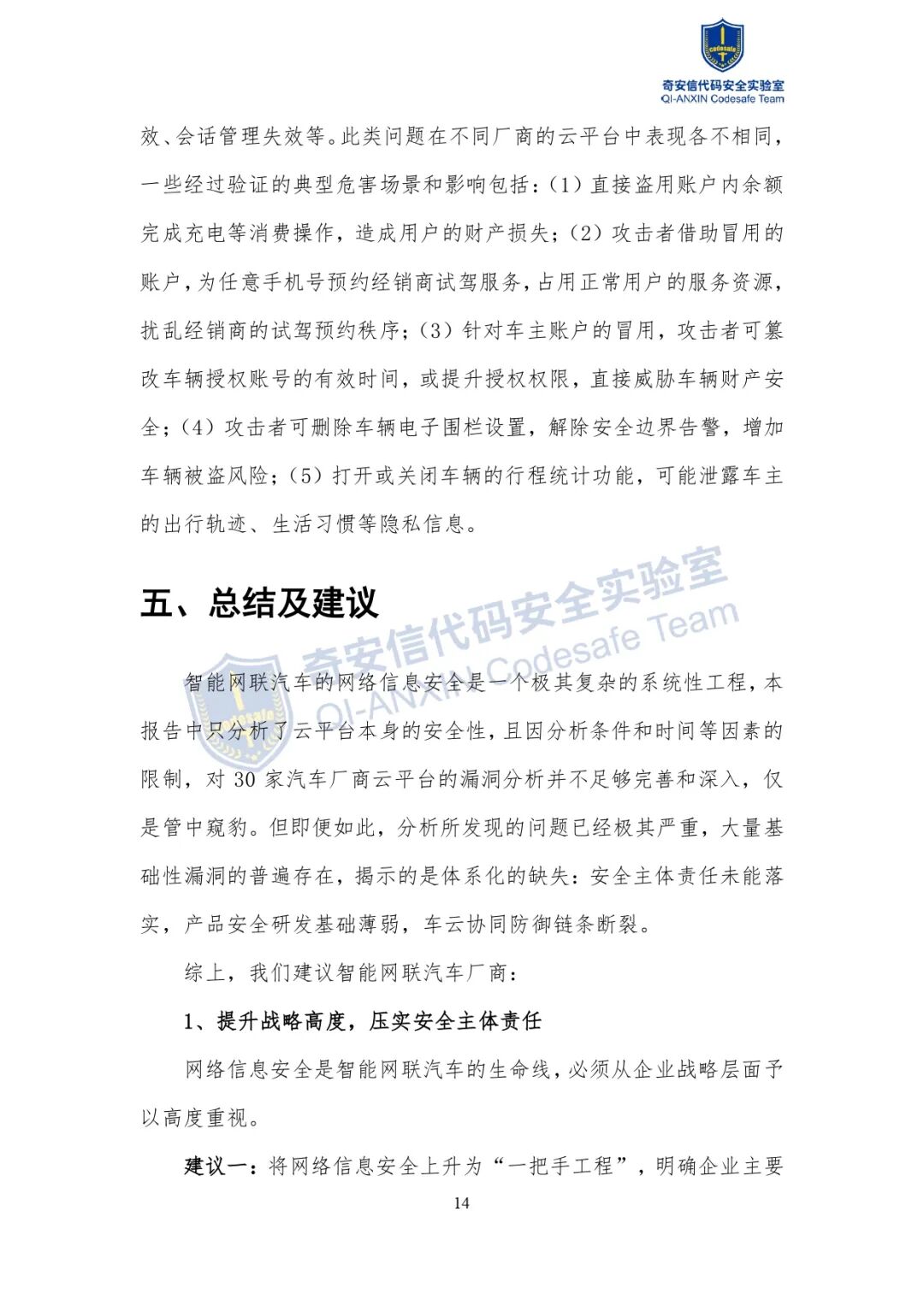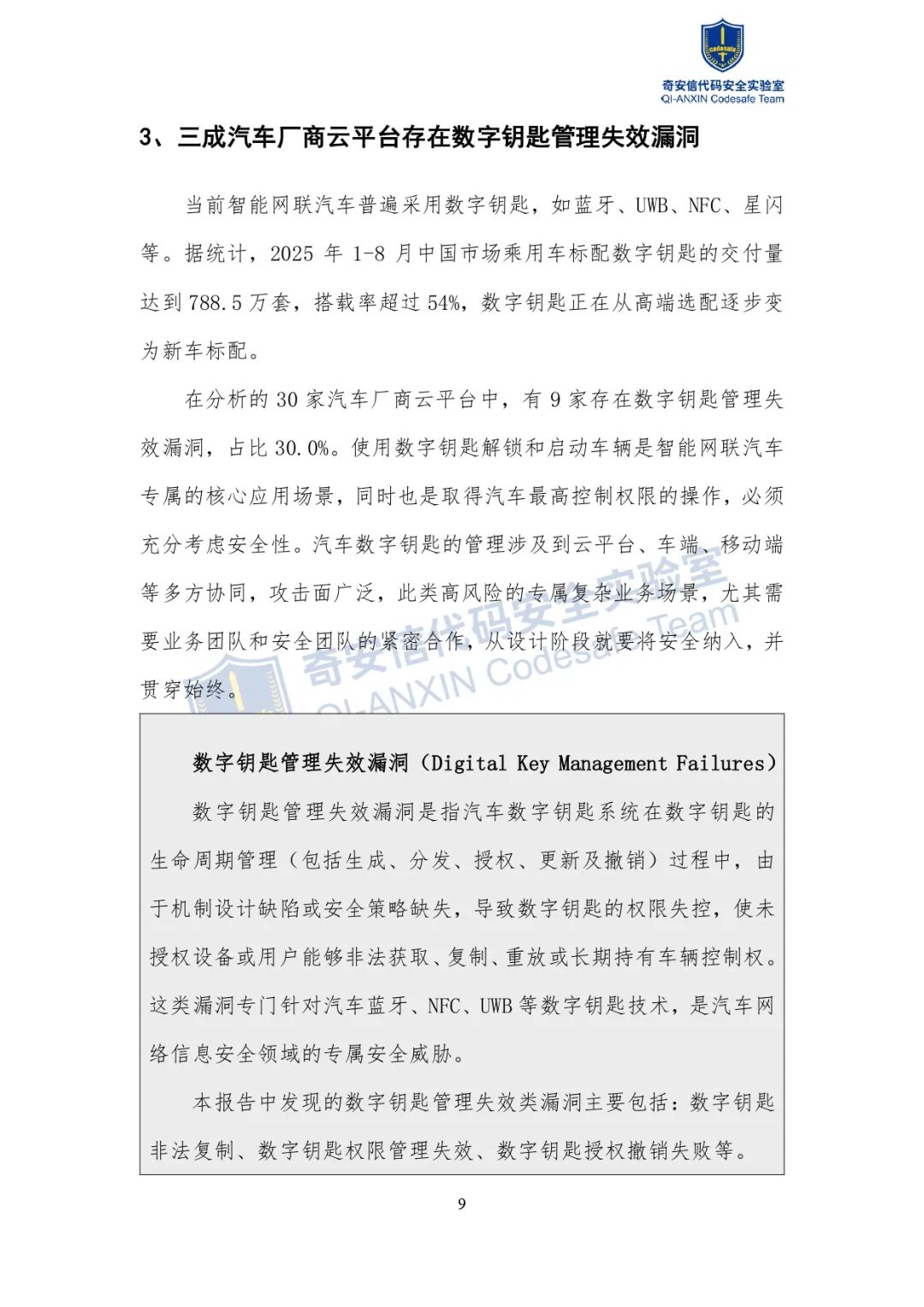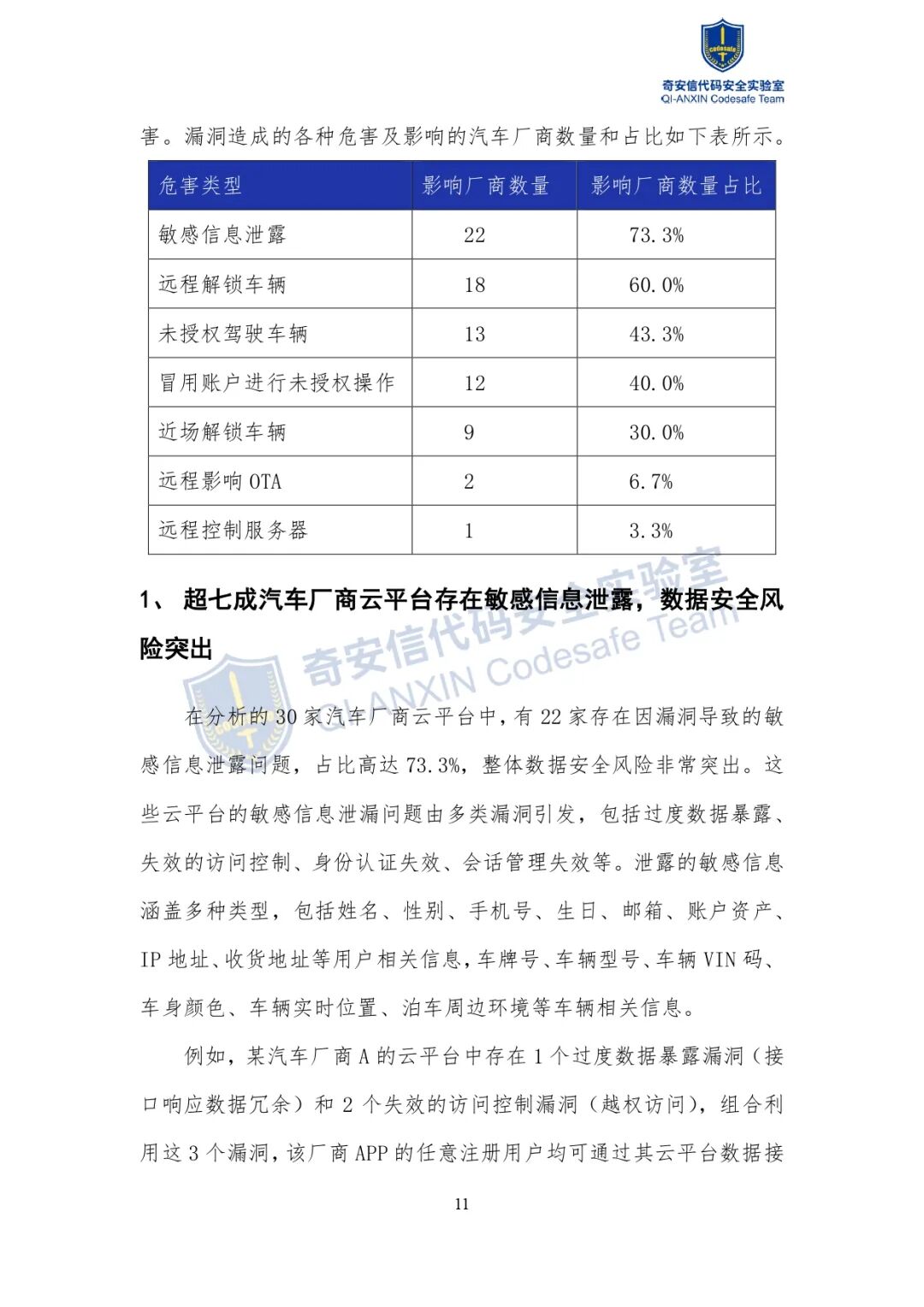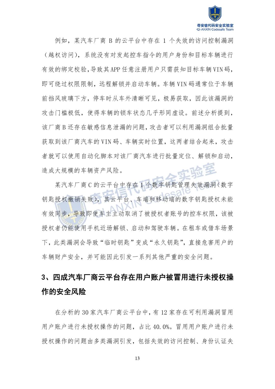奇安信发布智能网联汽车云平台漏洞报告:九成存漏洞,超七成涉高危风险