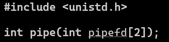 在父进程中调用系统调用接口pipe就能创建匿名管道。由于是内存级的空间,所以没有文件名,这也是为什么被称为匿名管道。pipe需要传入一个int[2]类型的数组,它会在数组中填写两个文件描述符,第一个用于读取,第二个用于写入。使用示例如下。