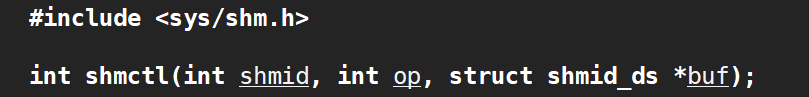 shmctl接口是用来控制共享内存的。参数shmid是目标共享内存的标识码,参数buf用于传入或接收共享内存段的结构体,而这个结构体正是操作系统用于管理共享内存的结构体,使用man shmctl可以在手册中查看结构体中的成员,具体使用方法和参数op有关。op是操作选项,有三个选项可选。传入IPC_STAT时,参数buf用于接收共享内存的信息,传入IPC_SET时则是用buf传入要修改的信息,使用时一般是先创建一个shmdt结构体对象,然后调用shmctl使用前面的选项IPC_STAT接收共享内存的数据,然后在其基础上对成员进行修改,最后再调用shmctl使用选项IPC_SET对共享内存的数据进行修改。参数op传入IPC_RMID则是删除共享内存,此时buf传入NULL即可。