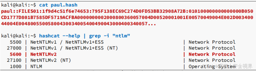 | Net-NTLMv2哈希 | 可用于离线破解的完整哈希值 |