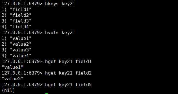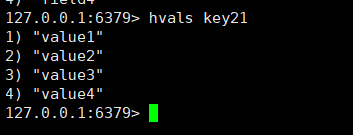 hvals:和hkeys类似,但这个指令是获取到哈希中所有的value。