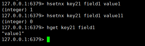 hsetnx:当field不存在的时候,可以设置成功,如果field存在,则设置失败,当设置成功返回1,设置失败返回0。