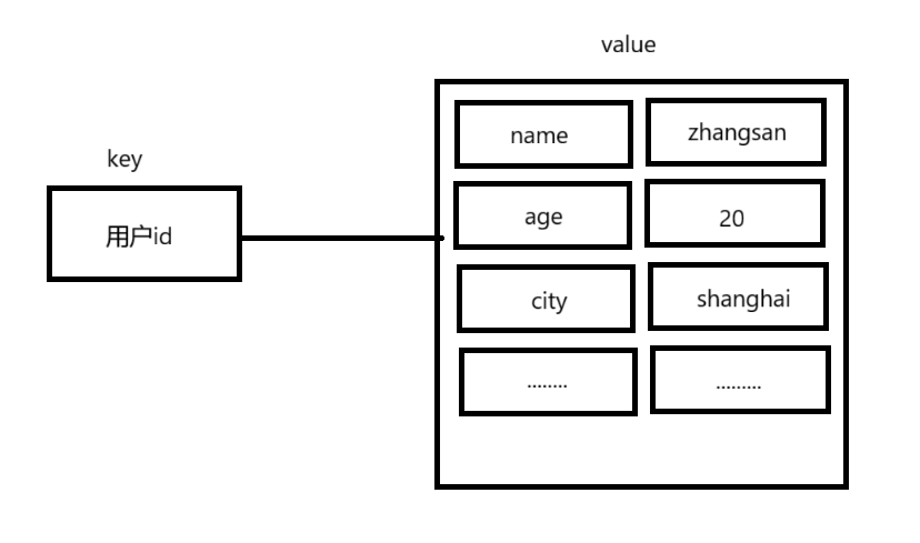 - 可以用于存储一些类似于关系型数据库的内容,比如说有一个用户的id,对应的value哈希就可以存储名字,年龄,城市等和此用户有关的信息。如果想使用字符串类型存储也是可以的,但这需要用到json格式。