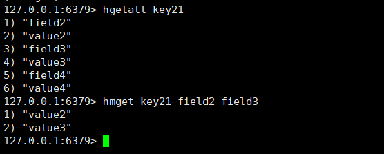 hmget:hgetall的风险还是比较大的,如果我们只想查询其中几个命令,可以使用hmget,可以一次查询多个field。