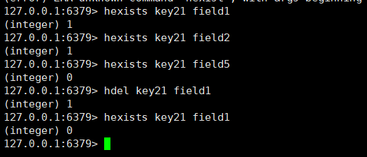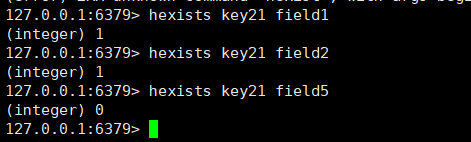 hexists:判定hash中是否存在对应的字段,如果存在返回1,不存在返回0。