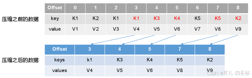 - **分区日志中的偏移量:**每个消息在分区日志文件中都有其偏移量,但消息在日志文件中的存储位置(物理偏移量)与消息偏移量(逻辑偏移量)可能不同,因为Kafka会进行日志压缩和清理。