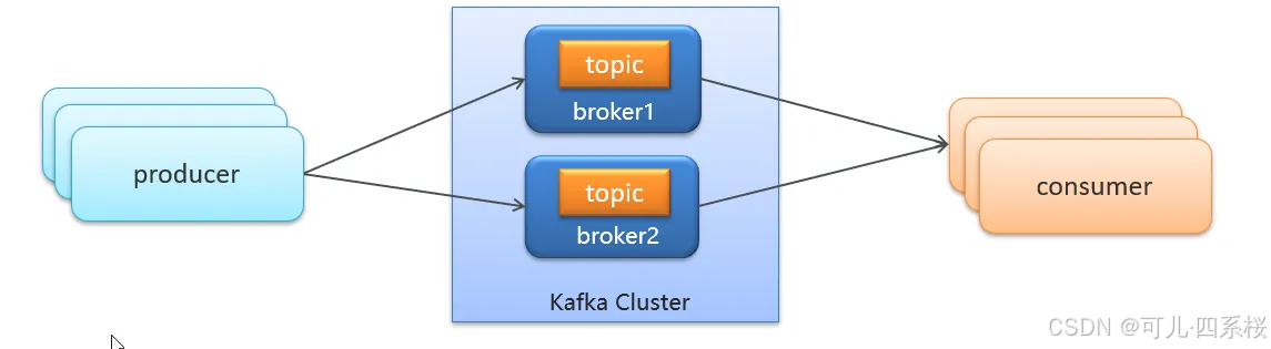 - Broker: Kafka 服务器节点,负责存储数据和处理客户端请求。