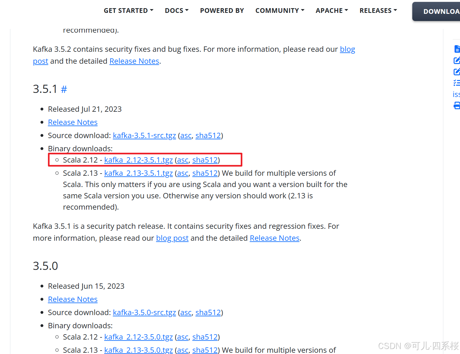 下载地址:https://kafka.apache.org/community/downloads/