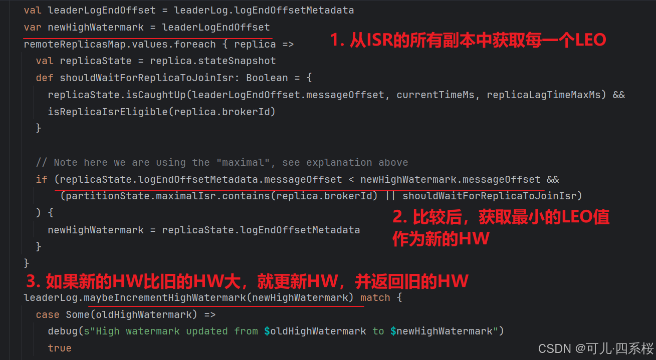 - HW (High Watermark): 高水位线,表示已提交消息的最大 offset。