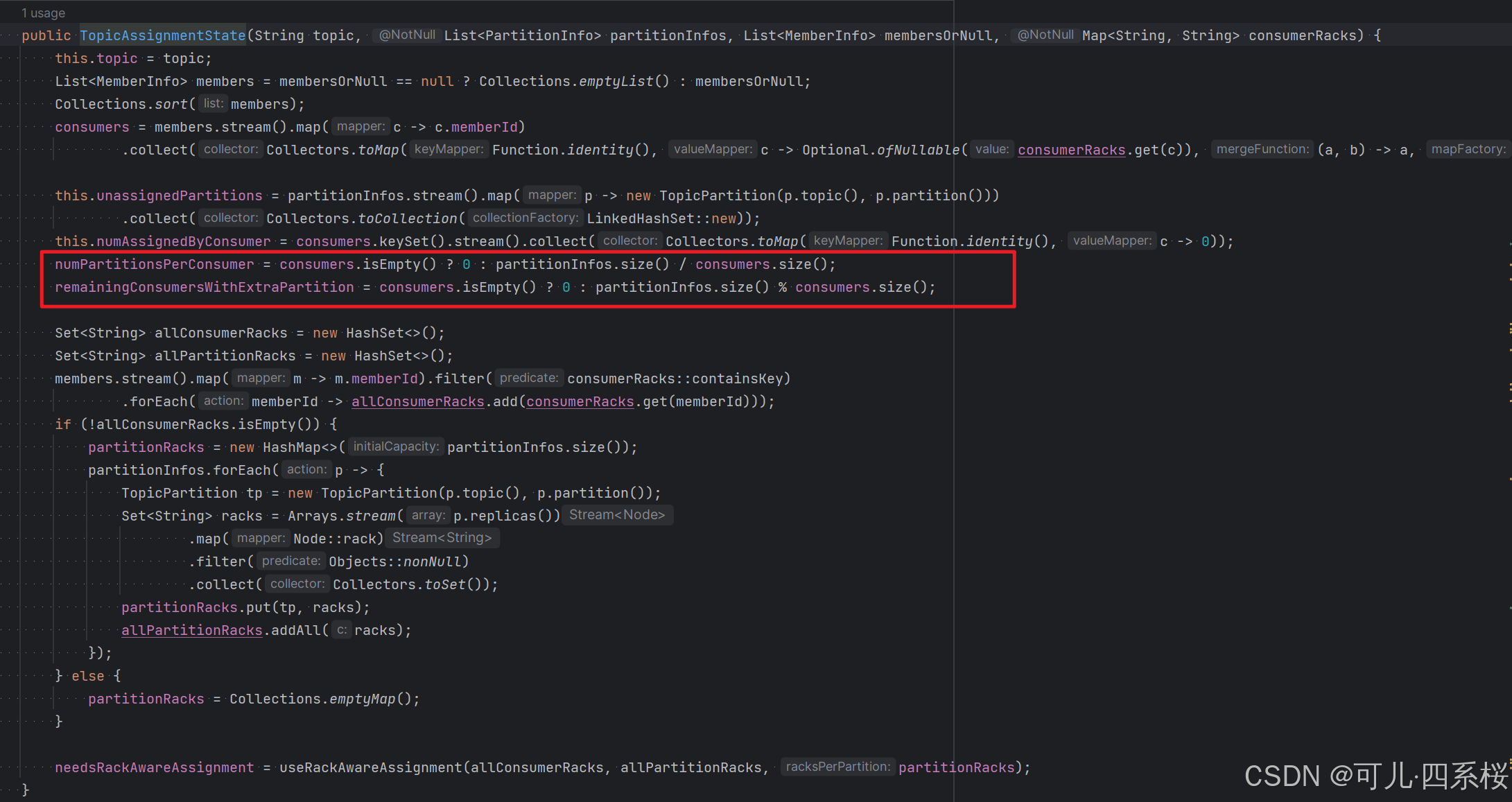 - 计算 n = 分区数 / 消费者数