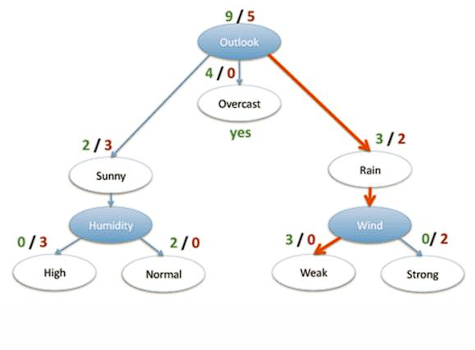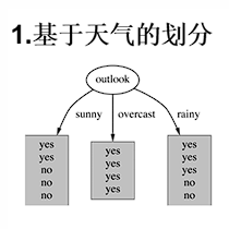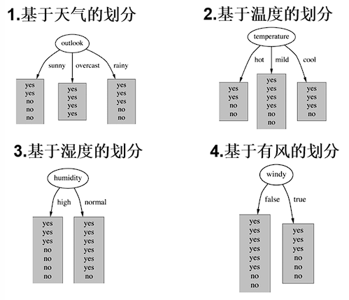 天气这个特征,一下子把"能不能打球"分得更清楚,所以它胜出。