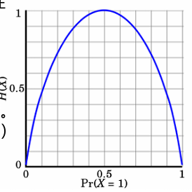 当p = 0.5时,H(p)=1,此时随机变量的不确定性最大