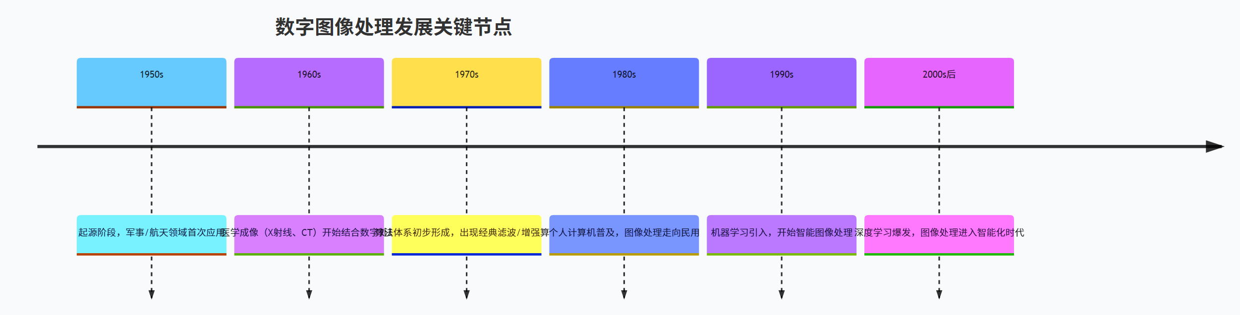 - 硬件发展:计算机技术的进步(算力提升、存储成本降低)让数字图像的处理从理论变为现实。