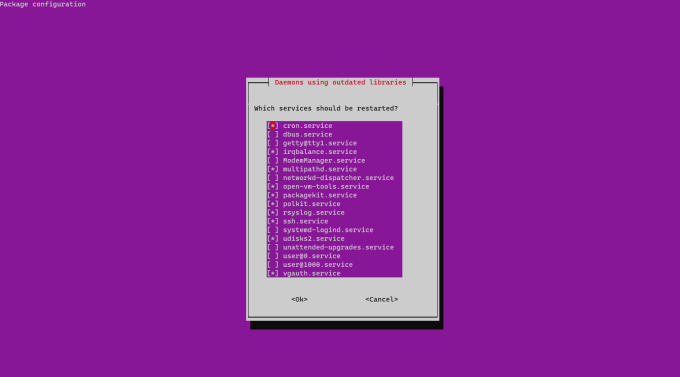 在一个全新安装的Ubuntu 22.04 LTS上,每次使用apt安装或更新软件包时,会出现一个 Daemons using outdated libraries 弹窗,Which service should be restarted ? 大概是下面这个样子: