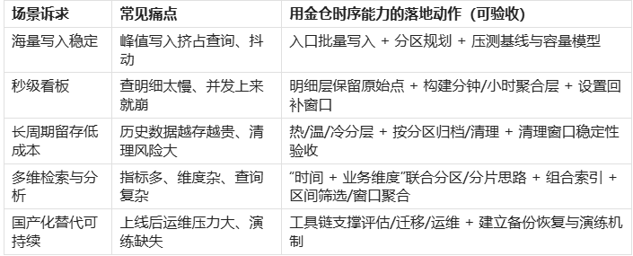 顺带一提,"时间 + 业务维度"的联合分区/分片,以及把查询收敛到区间筛选与时间窗口这套写法,在金仓官网的时序分析文章里被反复强调,用它来当方案的设计抓手会更落地。[kb-logs][kb-safety]