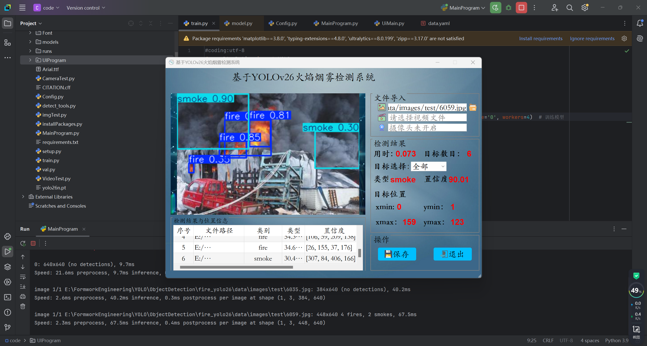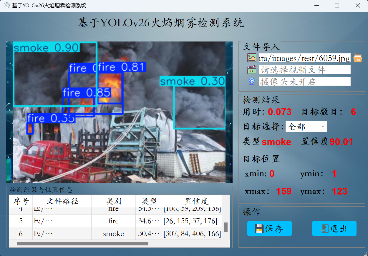 基于深度学习YOLO26神经网络实现火焰烟雾检测和识别,其能识别检测出2种火焰烟雾检测:names: ['fire','smoke']