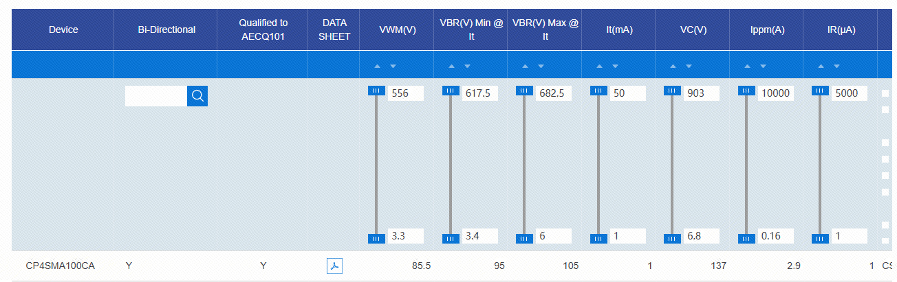 | 反向截止电压(VRWM) | 正常工作最大电压 | 5V~600V(需高于电路工作电压 10%-20%) |