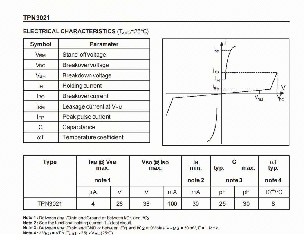 - 浪涌触发:电压超过击穿值(Vbr)时,雪崩击穿触发可控硅导通,泄放浪涌;