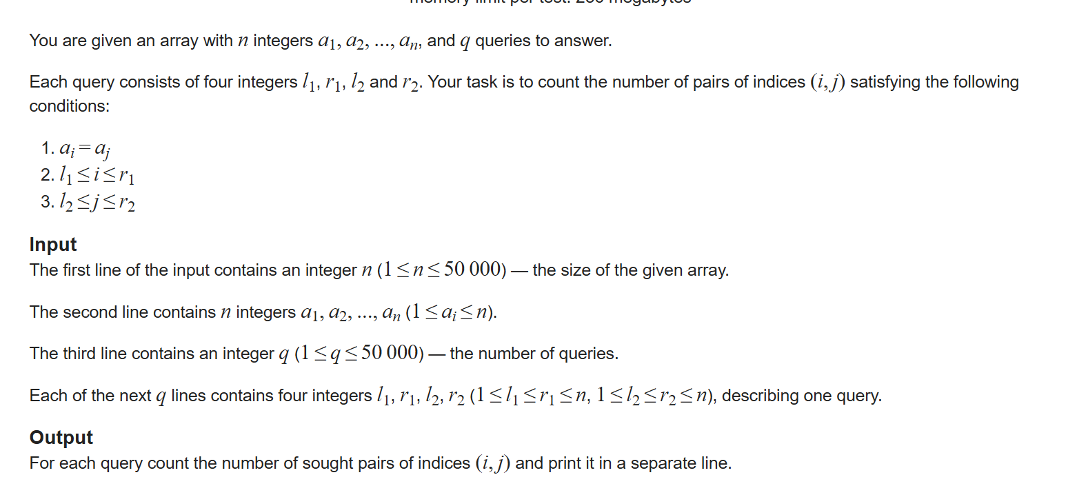 for (int i = st[q1]; i <= r1; i++) {