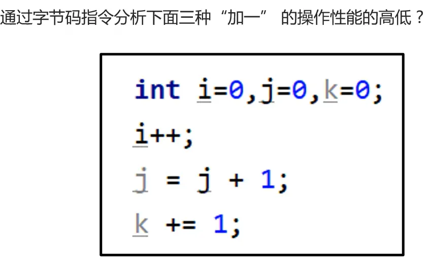 i++ 和 k+=1 都是一行 iinc _ by 1 就搞定了,但是 j = j + 1 需要四行指令