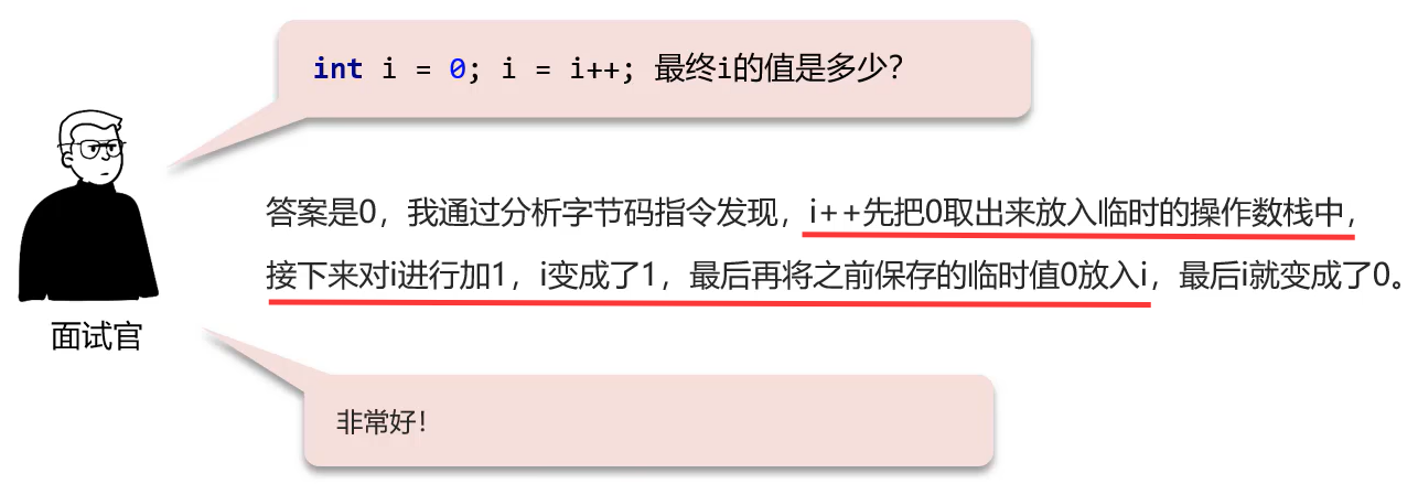 要理解这段字节码指令是如何执行的,我们需要先理解两块内存区域:操作数栈和局部变量表。