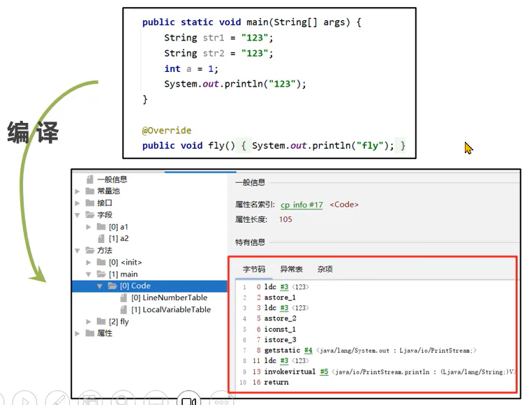 - 方法: 当前类或接口声明的方法信息,核心内容为方法的字节码指令