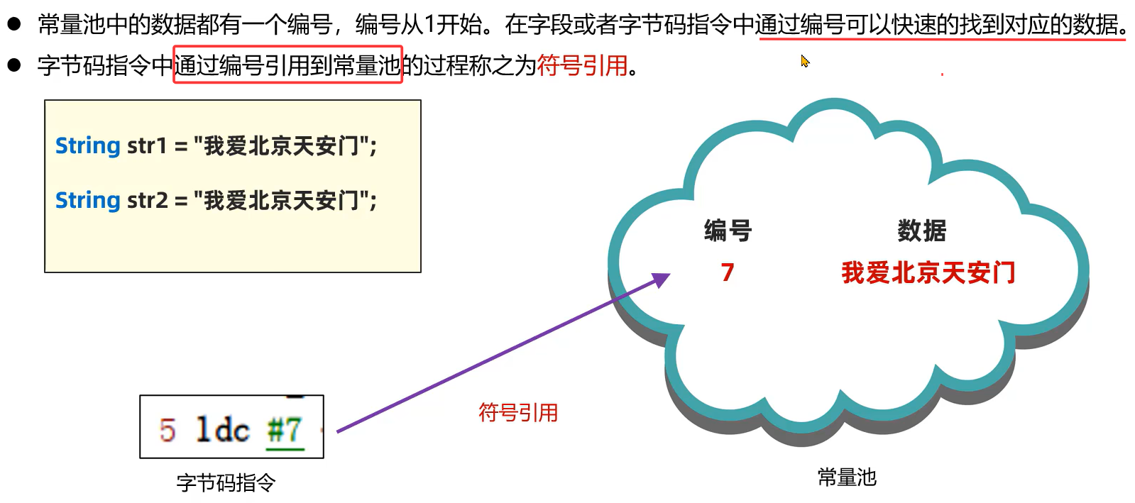 字节码文件中常量池的作用:避免相同的内容重复定义,节省空间