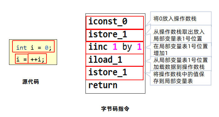 而 ++i 只是对两个字节码指令的顺序进行了更改:iioad_1 和 iinc 1 by 1