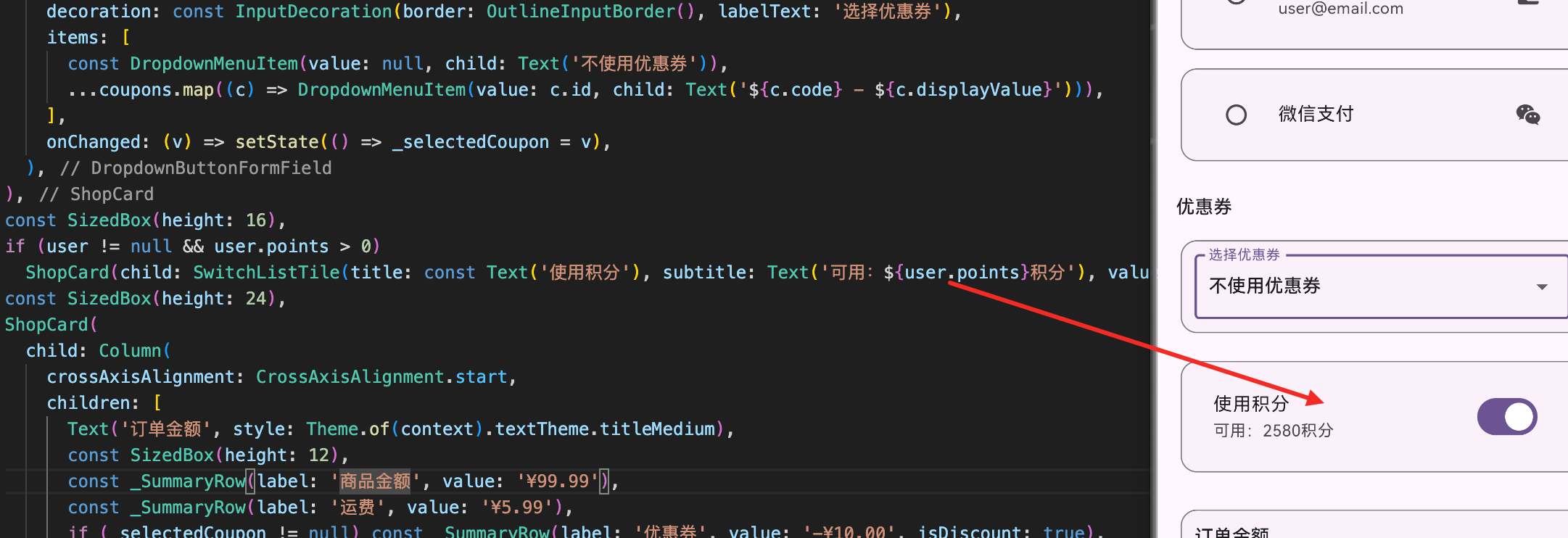 积分系统的实现涉及多个重要的技术点。首先是用户模型的扩展,包含积分和会员等级信息。其次是积分页面的实现,展示积分余额、获取方式和历史记录。再次是会员等级系统的设计,根据积分自动升级。最后是积分的计算、兑换和提示功能,提供完整的积分管理体验。