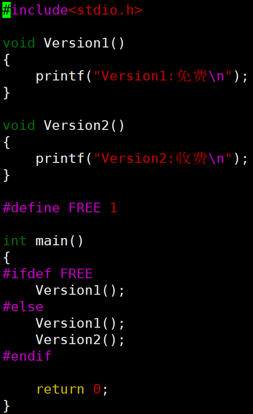因为没有定义V1宏,所以编译时相当于把Version1()函数调用的过程这部分代码给裁掉了,只保留了Version2