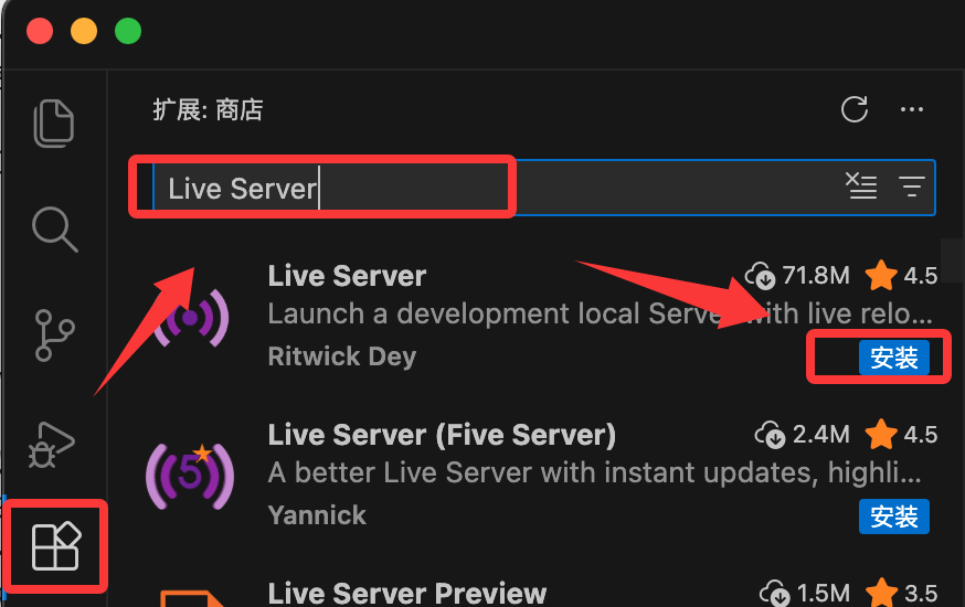 点击 VS Code 左侧边栏的方块图标(Extensions),搜索并安装以下两个插件,它们对新手至关重要: