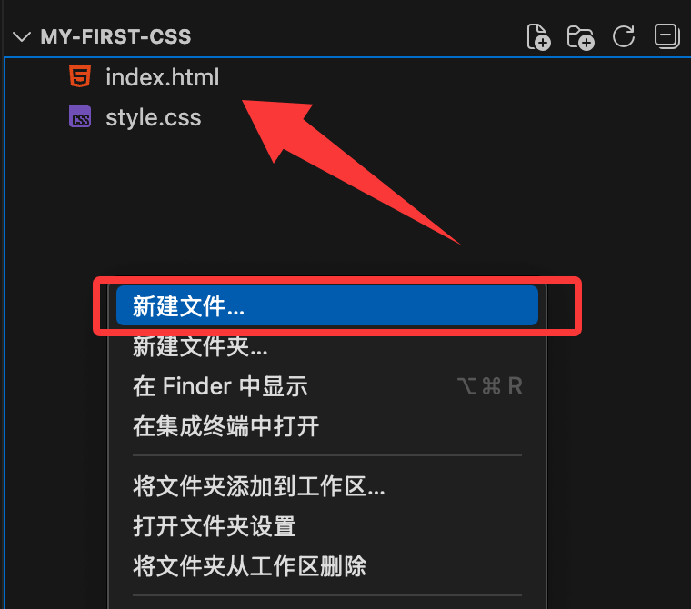 再次右键,新建文件 style.css (这是网页的皮肤)。