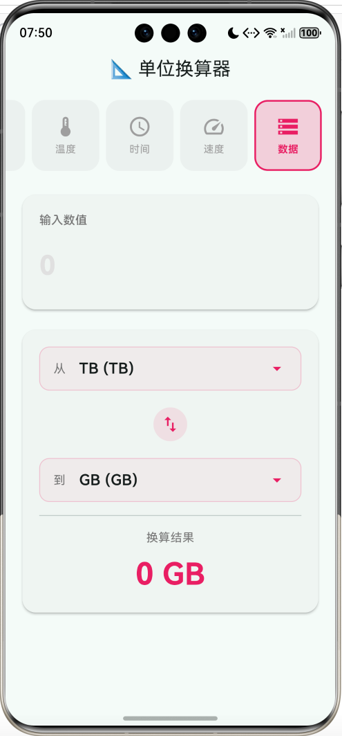 - 🎯 8大类别:长度、面积、体积、重量、温度、时间、速度、数据