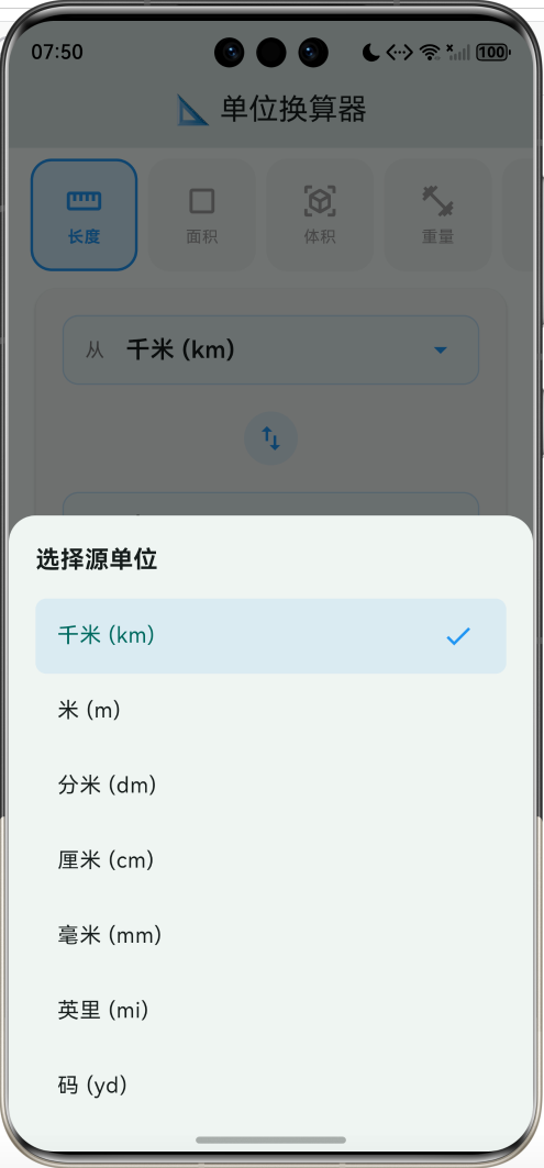 单位换算是日常生活和工程计算中的高频需求。本文将手把手教你用Flutter构建一款功能完备的单位换算器,涵盖长度、面积、体积、重量、温度、时间、速度、数据存储等8大类别,支持50多种单位的实时互转。