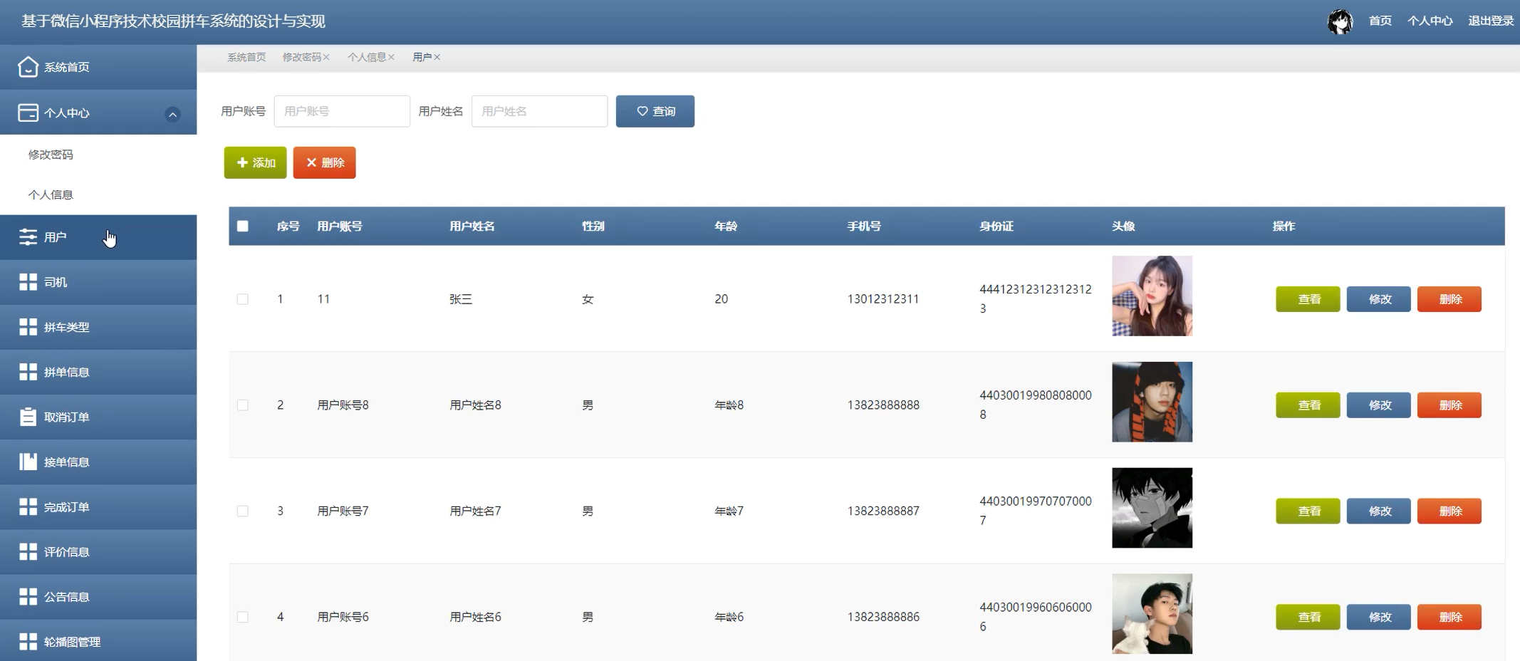 校园拼车系统的操作可行性源于用户习惯与系统设计的双重适配。从用户角度,微信小程序无需下载、操作简洁,符合师生日常使用习惯;实名认证与信用评分机制保障拼车安全性,降低用户顾虑;实时定位与行程共享功能提升出行透明度,增强用户信任。从管理角度,系统提供可视化后台管理界面,支持用户信息审核、行程监控、投诉处理等操作,降低管理复杂度;自动化流程(如订单状态机、支付回调)减少人工干预,提升运营效率。此外,系统可与校园一卡通、教务系统对接,进一步简化用户认证与数据同步流程,确保操作便捷性。