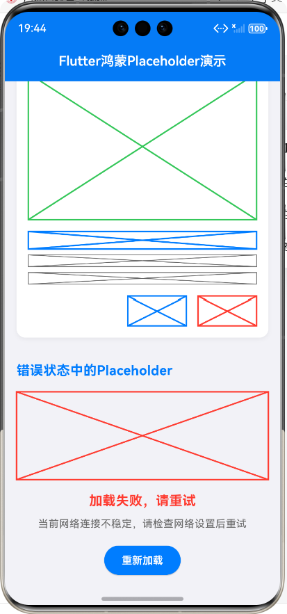 - 错误状态:当内容加载失败时,显示占位效果并提示用户
