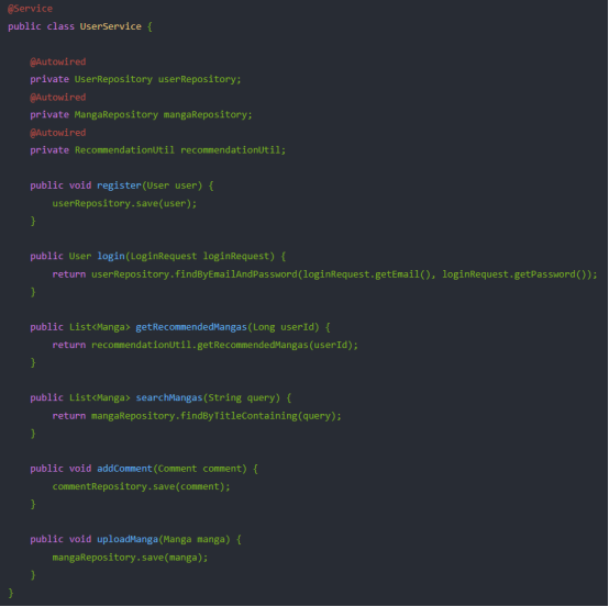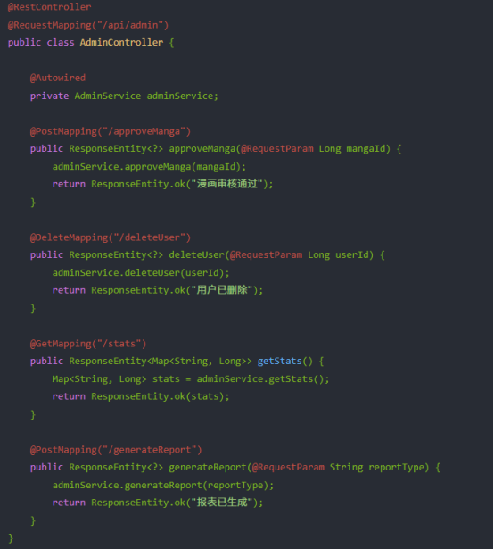 - 服务层 (UserService, AdminService, MangaService)