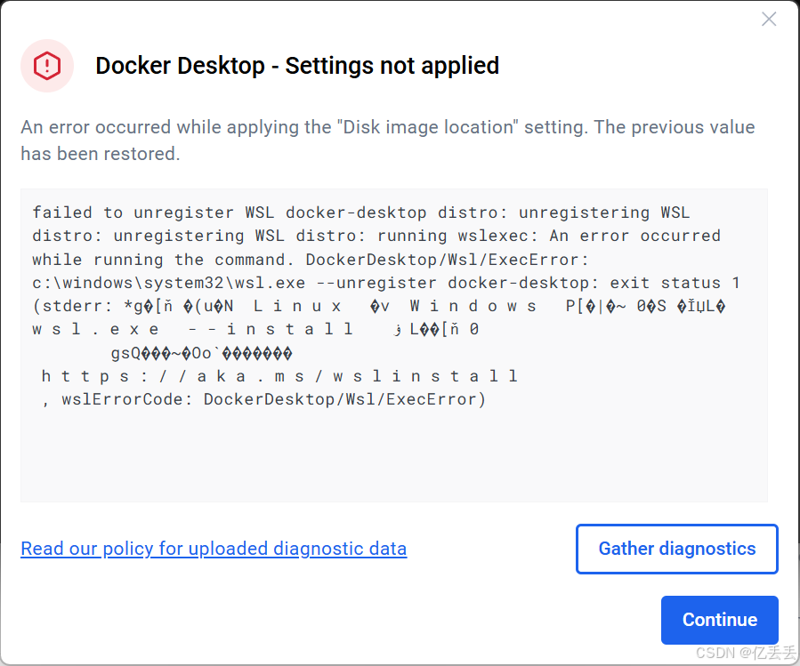 报错表明:Docker Desktop 依赖的 Windows Subsystem for Linux (WSL 2) 子系统出现了问题。需要先修复WSL,然后才能成功迁移数据目录。