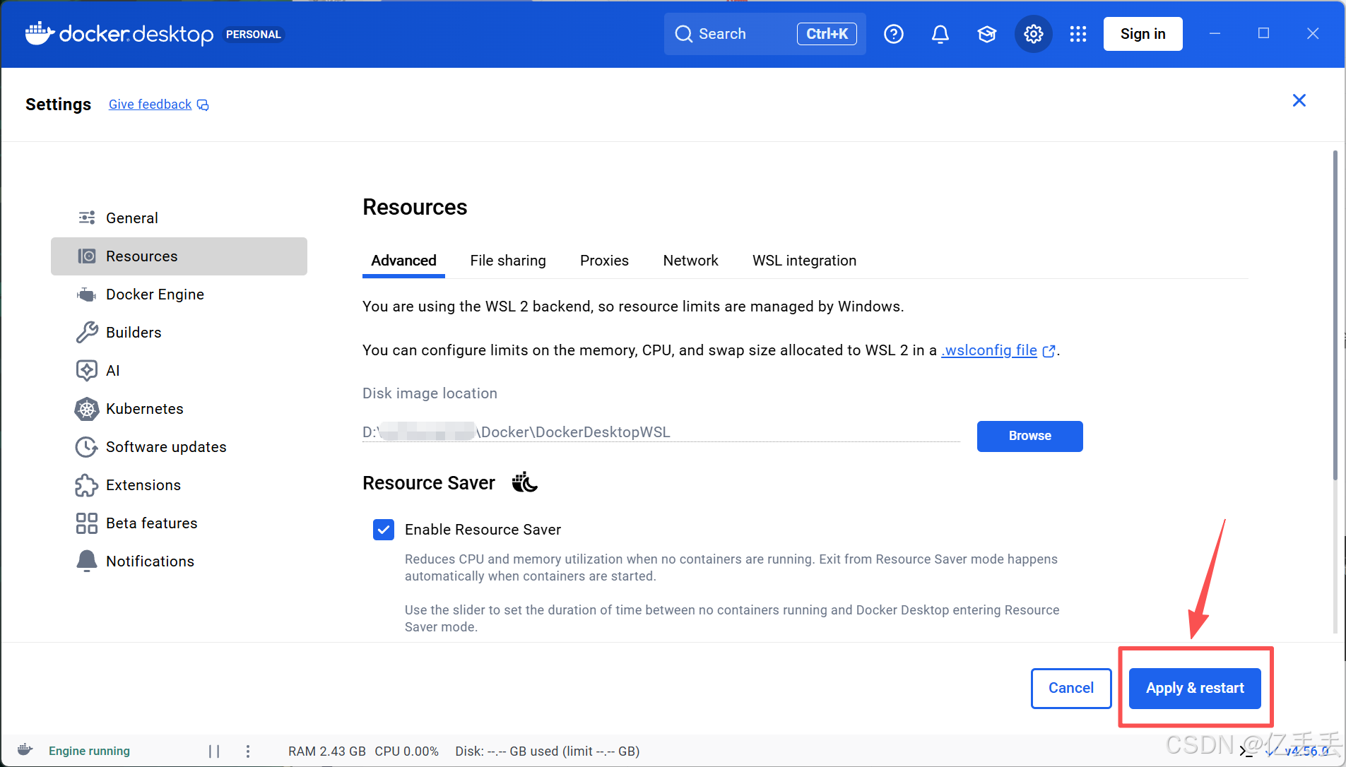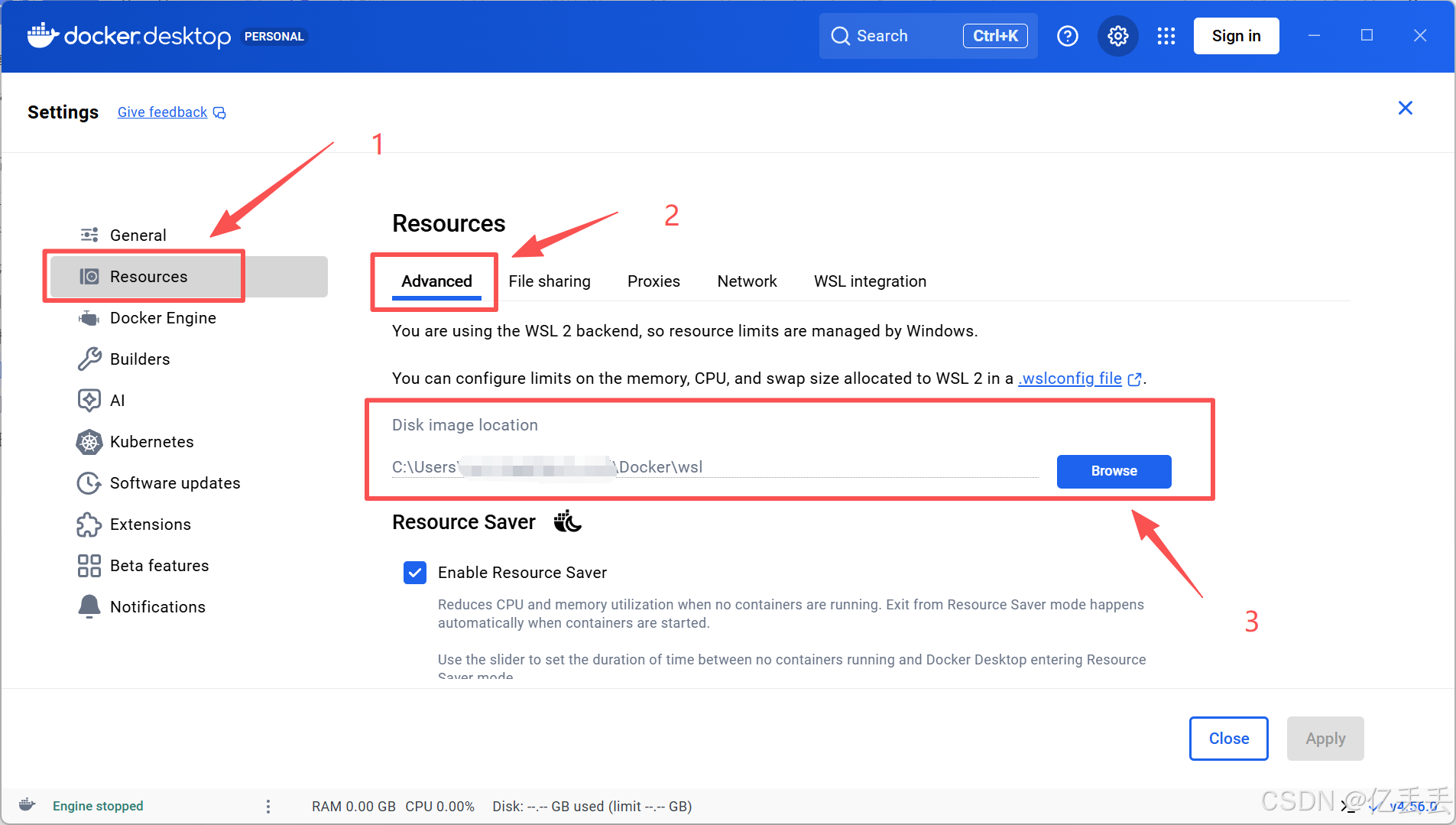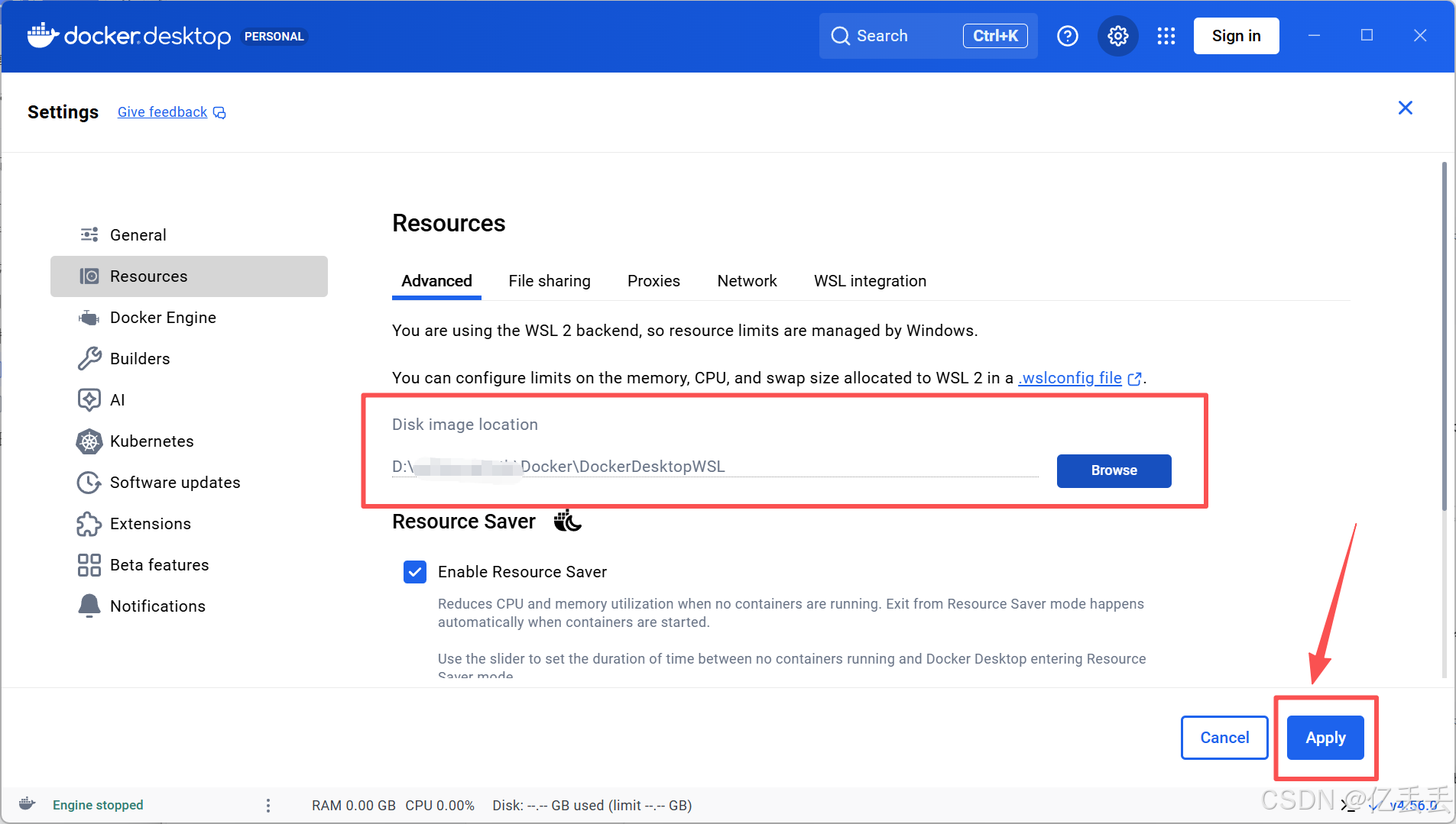 点击右侧的 "Browse" 按钮,选择一个自定义文件夹,例如D:\...\Docker